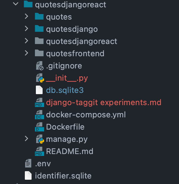 I started by creating a Dockerfile for my backend api (pictured below in quotesdjangoreact) and then a separate one for my frontend (quotesfrontend).