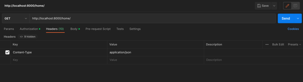 Headers | Key: ‘Content-Type’, Value: ‘application-json’
