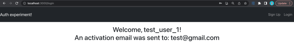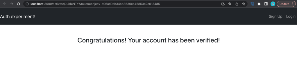 Activation redirects: in production, I’d likely use a combination of gunicorn and nginx to serve as a WSGI server + reverse proxy , but in my localhost example, I’m explicitly hardcoding the url. I had to do some finagling to add parameters to the url. Separately, as an additional feature, I could add in logic to handle cases where the link expires or the user somehow lost the first email (perhaps I will in the future).