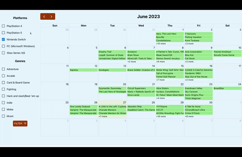 At the moment, I’m accounting for two filter criteria: platform and genre. The gif below shows the results.