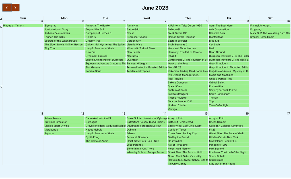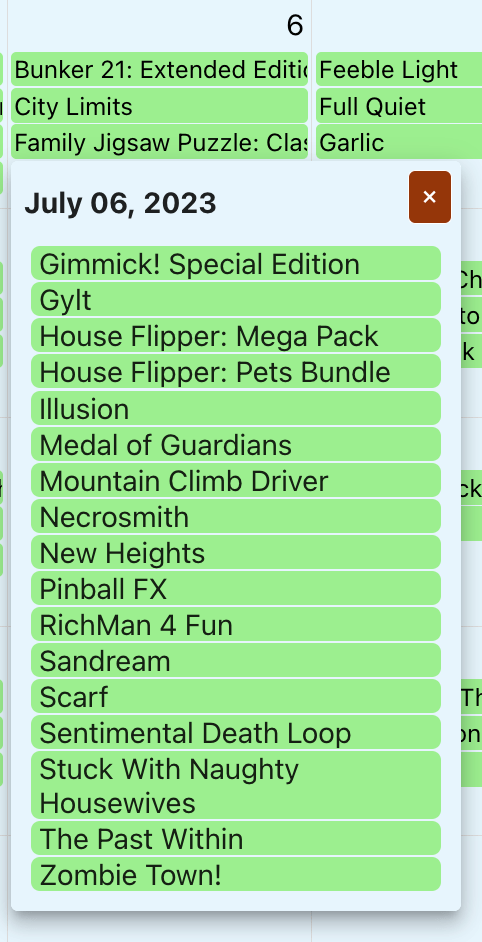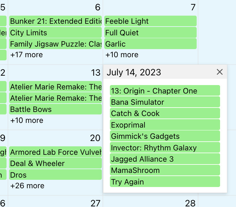 I wanted a way to gracefully handle days where a ton of games are releasing. In the vanilla component, this is what that (less user-friendly) case looks like: