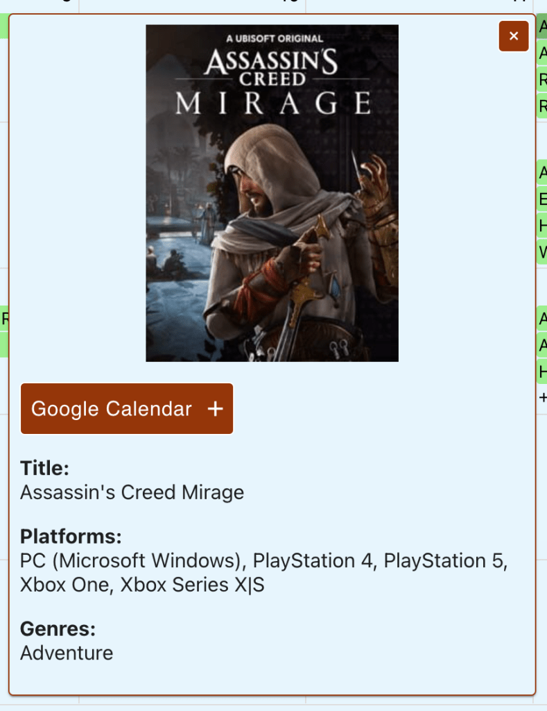 Feature: ‘Google Calendar +’ button is displayed in the game detail card